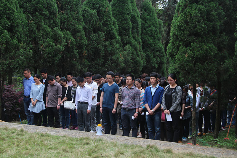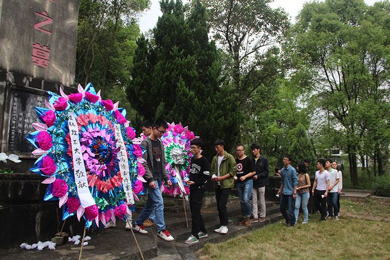 为缅怀先辈,感恩思源,4月1日下午,校团委书记周国桥、校团委全体人员、各学院团委书记、辅导员,校级学生干部和学生代表等一百余人赴雁山镇马君武墓园进行祭扫。