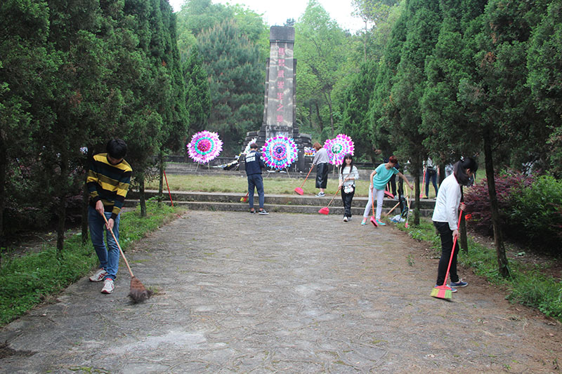 最后,全体师生绕墓一周并依次敬献上寄托无限哀思和敬仰的小白花,并对墓园进行了全面的清扫。