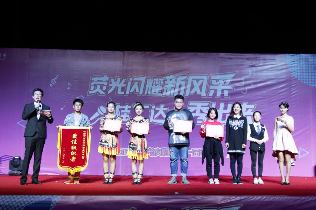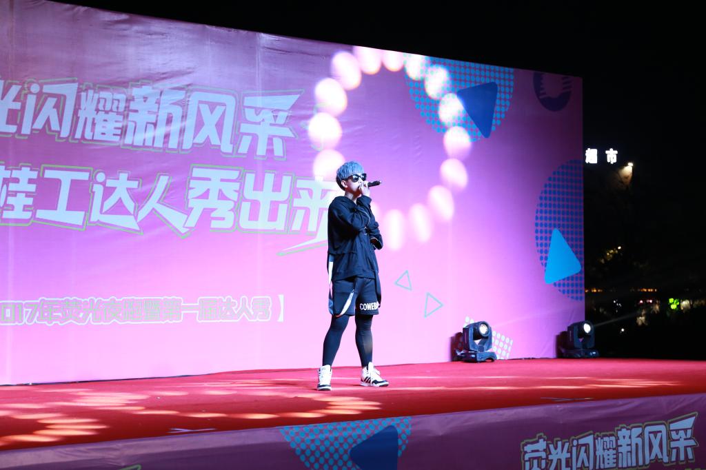 本次活动开场有请了D.N.A乐队和STROM乐队也给大家带来了激情四射的表演。紧接着,活动为keep跑10月份前三名的同学准备了奖杯及精美礼品,并对这三位同学进行了采访。然后在热情洋溢的啦啦操表演下,本次荧光达人秀正式拉开帷幕。接着,游戏区开放,达人秀正式开始。参与夜跑的同学们佩戴好荧光设备后,在工作人员的带领下活力开跑。本次活动的节目内容积极向上,含义明确且深刻,形式多样,精彩纷呈。评委们秉承着公平公正的原则为每一位选手的表演打分。为了使观众们能够更加融入到活动中,活跃现场气氛,在活动的中场,有与观众互动的环节,这个环节分为两种形式进行,抽签和追光,被抽到的幸运观众可获得精美礼品一份。活动接近尾声,往年的十大歌手曹彬与forever乐队压轴表演。最终,本次达人秀的比赛结果出炉,前三名分别是公共管理与传媒学院的《新生入侵》、艺术学院的《去大理》、公共管理与传媒学院的《快乐的火把节》。本次荧光达人秀在假人挑战中落下帷幕,现场的观众们都积极参与其中。