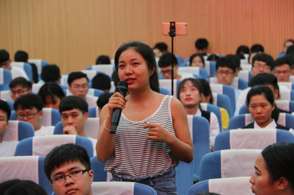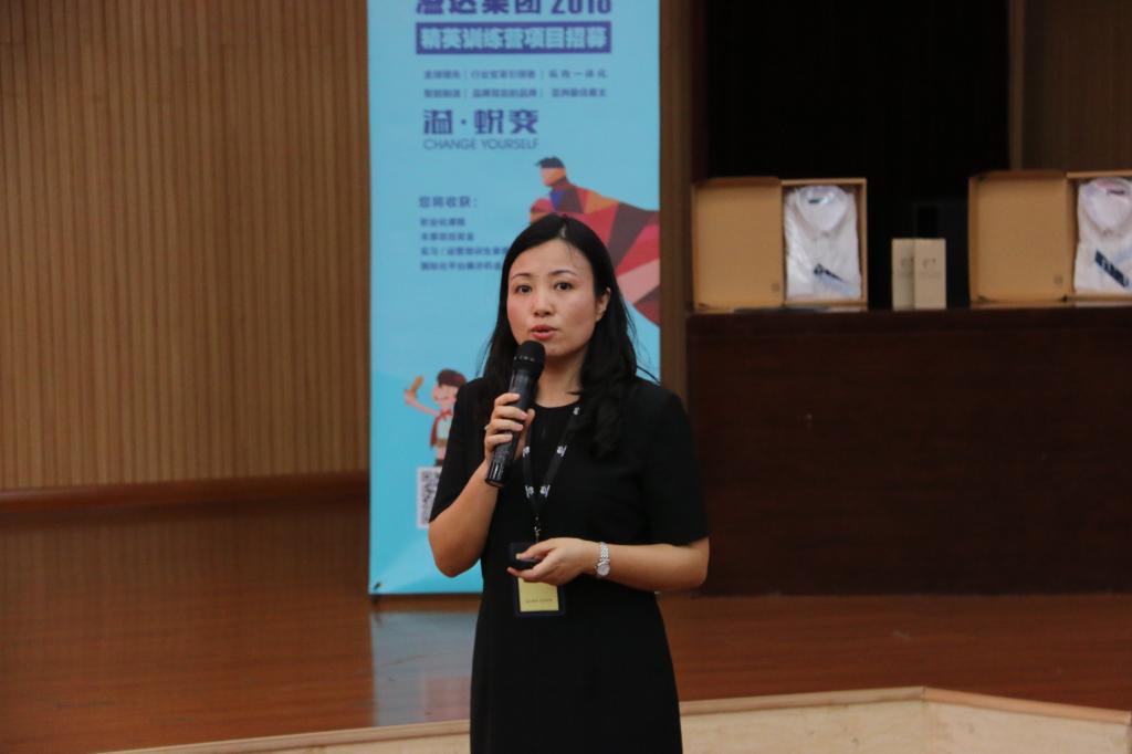 分享会上,同学们与嘉宾热情互动,回答问题积极踊跃,气氛十分轻松活跃。首先,主讲人成亮女士详细的向同学们全方位介绍了溢达集团。紧接着,由曾经参加过溢达精英训练营的杨凡同学叙述自己在训练营里的经历,同时也和同学们分享他的心路历程。最后,以小测试的形式进行考核筛选,并结束整场活动。