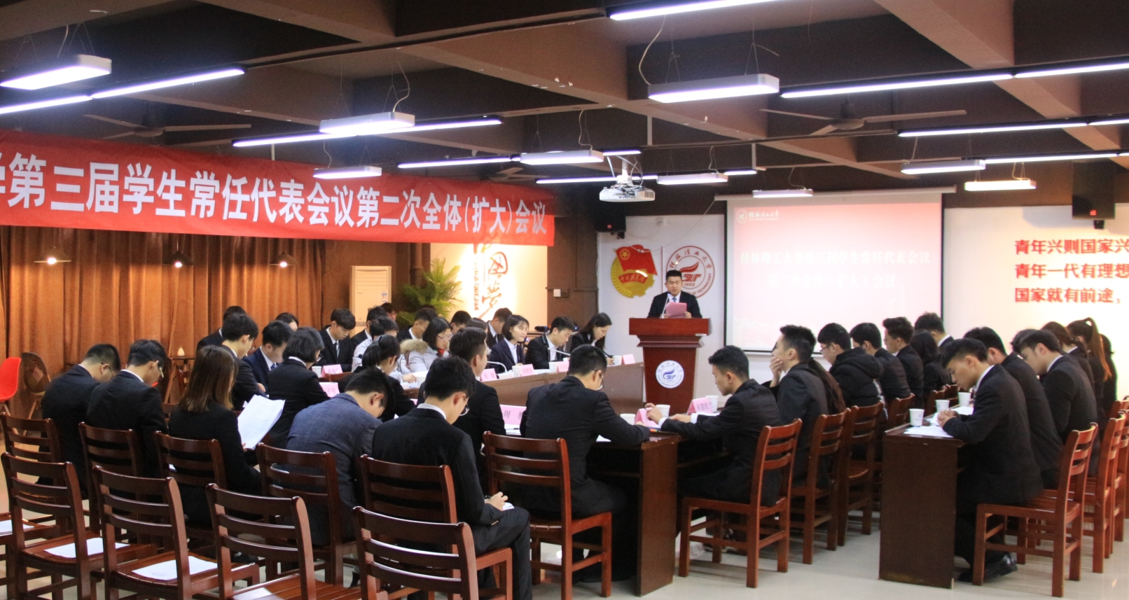1月3日下午,太阳集团城网站2017第三届学生常任代表会议第二次全体(扩大)会议于雁山校区青马书屋顺利召开。校团委副书记莫媛、办公室副主任刘茜雯、学生副书记谭明灿出席会议,第三届学生常任代表及各学院列席代表40余人参加会议。