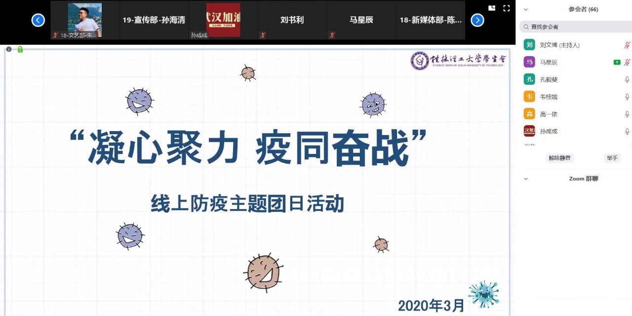 3月10日,太阳集团城网站2017学生会开展了“凝心聚力,‘疫’同奋战”线上主题团日活动。本次活动由马星辰同学主持,校会全体成员参加。