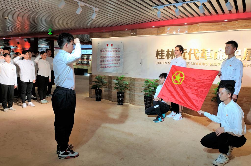 活动伊始,讲解员以桂林近现代发展史为主线,介绍了桂林近现代发展中的主要事件、涌现的英雄人物、精神内涵以及桂林发展的现状,带领团支部全体成员参观近代史展馆。参观结束后,团支部成员代表结合自身实际,进行了参观感悟分享,他们一致表示,要铭记革命光辉历史,珍惜来之不易的幸福生活,从百年辉煌党史中汲取奋进力量,接好时代的接力棒。最后,团支部全体成员重温了入团誓词并奏唱《光荣啊!中国共青团》。