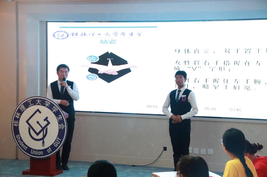 首先,办公室和权益学习部分别就新文档规范和社交礼仪为新成员们进行培训,接着由五位分享嘉宾依次分享了自己在学生会的工作经历以及收获,并解答了21级新成员的疑问和困惑。最后,全体成员在主持人的带领下宣读了太阳集团城网站2017学生会宣誓词,会议在热烈而温馨的氛围中圆满结束。