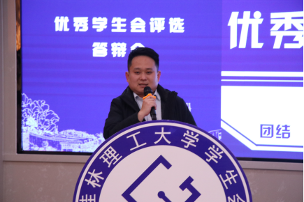 校团委副书记慕宗良老师对各学院学生会的工作答辩进行了点评,并结合自身的经历对学校学生会组织的发展提出了三点期望:一是加强理论学习,通过读原著学原文悟原理等方式,扎实推动理论学习在学生会组织走深走实。二是深化服务意识,持续聚焦“全心全意服务同学”的主责主业,做桂工青年想得到、信得过、靠得住、离不开的贴心人、暖心人、热心人。三是推动组织革新,始终坚持从严治会,做学生“友”、不做学生“官”,多为同学计,少为自己谋。