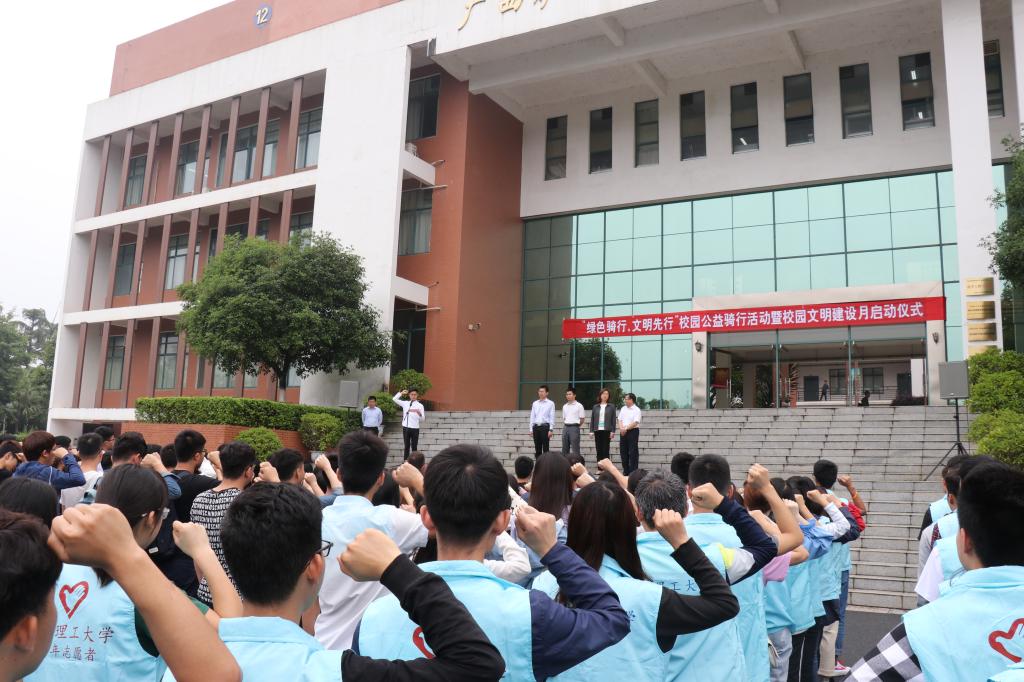 启动仪式上,学生代表唐昊同学向全体同学发出倡议,号召广大学生争做文明创建的参与者、文明理念的传播者、文明行为的践行者、文明校园的维护者,同心同向、同行同德,为营造美丽桂工、和谐桂工、文明桂工贡献自己的力量。而后,学生代表卢鹏带领大家进行“告别陋习、崇尚礼仪、争做文明使者”宣誓仪式,宣誓声声声响亮,字字撼人,展现了桂工学子为建设文明校园的决心。