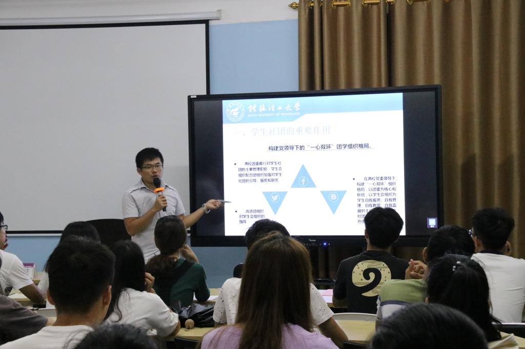 “桂工之菁学生社团骨干培养计划”旨在提升学生社团活动策划与管理能力,加强各学生社团骨干相互交流学习,提高社团工作多层次、多渠道、多领域的合作发展,为学校社团文化的繁荣发展奠定了基础。