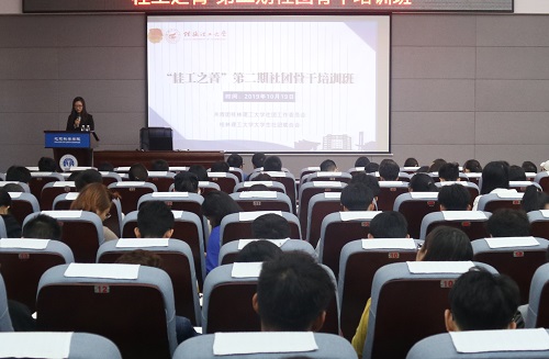 为加强和提升学生社团骨干队伍的政治素养和工作能力,校团委于10月19日在雁山校区地球科学与工程学院报告厅开展“不忘初心促发展,凝心聚力再出发”为主题的社团骨干培训班。校团委副书记饶蠡、社团部负责人出席了本次培训班,250名社团工委、社联、校级学生社团学生骨干参加了培训。