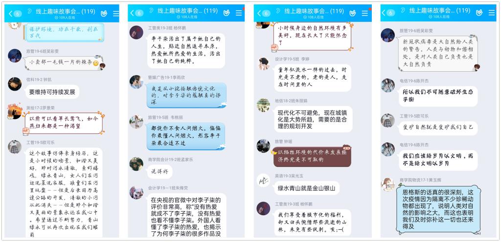 人与自然和谐相处是人类永恒而又关乎命运的重要话题,本次活动主要围绕“人与自然和谐相处”展开故事讲述及主题讨论。活动中,同学们认真讲述了自己的趣味故事,如怎样与动物成为朋友、如何拒绝野味、如何看待李子柒的世外桃源生活等;还有一些同学追忆了童年中的小河和饲养的小动物,从多个角度表述人与自然和谐相处的重要性和必要性,并积极发表自己太阳集团城网站2017人与自然和谐相处的意见和建议。整场活动气氛极佳,交流热情高涨,真正做到了思有所想,学有所得。