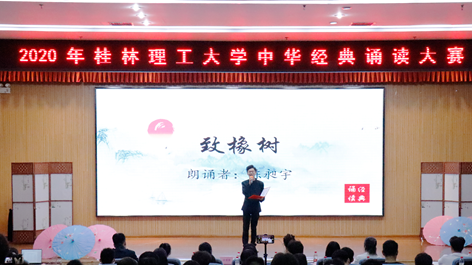 本次大赛历时近一个月,经过各学院初赛选拔,共有25组选手进入决赛。诵读作品囊括了古代、近代有社会影响力的优秀文学作品以及富有人文特色的名人名作,体现中华优秀传统文化、彰显中华语言文化魅力。反映人民群众对美好生活的向往,抒发家国情怀,弘扬正能量,歌颂为全面建成小康社会而奋斗的英雄楷模、歌颂为打赢疫情防控阻击战作出贡献的一线医护人员、各行业英雄,体现全国人民众志成城、共同战“疫”的优秀作品。比赛以个人诵读与集体诵读的形式呈现,配合背景音乐或艺术表演形式进行演绎,展现对中华优秀传统文化的传承与创新。来自不同学院的参赛队伍为我们带来一场场美妙的视听盛宴。《乡愁》、《致橡树》等篇目悠扬、舒缓,《满江红》、《中国少年说》等篇目慷慨激昂,用优美的声音带动了观众的情绪。《将进酒》、《我的祖国》等文学经典在学子们的演绎下,散发出动人的光辉和魅力。同学们声情并茂、激情澎湃的朗诵,既展现了中国语言文字的音韵之美,也呈现了大学生的满腔豪情。“与诗书为伴,将经典诵读”经过激烈的比拼,信息科学与工程学院的薛淇升获得个人诵读一等奖,校艺术团获得集体诵读一等奖。