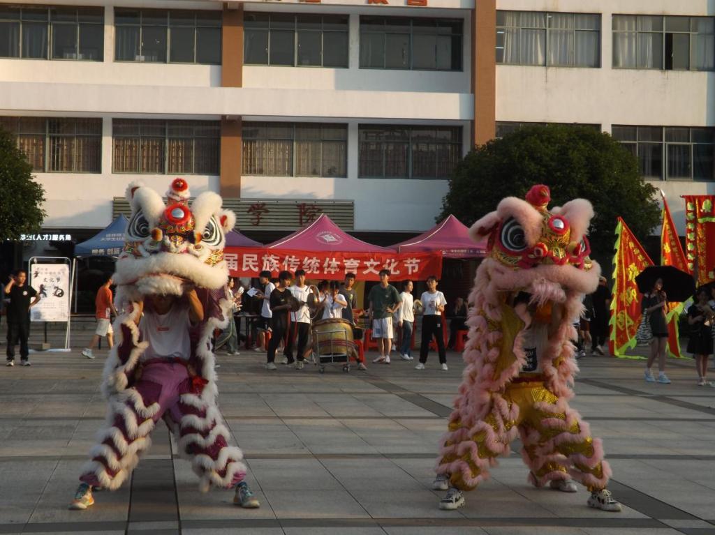 活动中,同学们有序的体验“双人马步推击掌”、“蒙眼自转五周打锣”、“抛绣球”和“机械击打”等体育文化活动,活动中场更是有精彩的双截棍与舞狮的表演。精彩的表演和有趣的活动赢得了同学们热烈的掌声,体育文化节在同学们的欢呼和掌声中宣告圆满结束