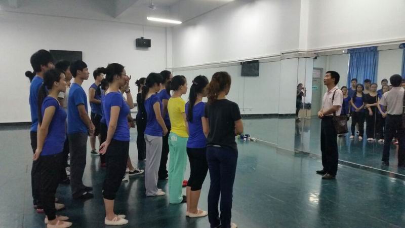 炎炎盛夏,苦练不缀。6月8日下午,校团委书记周国桥老师来到雁山校区大学生活动中心排练厅看望太阳集团城网站2017正在紧张排练、积极备战广西第四届大学生艺术展演活动的全体师生。