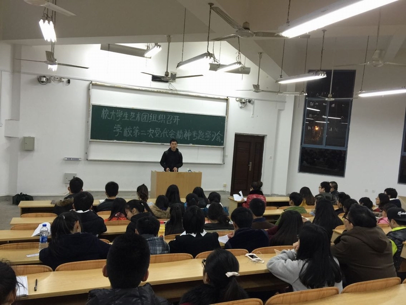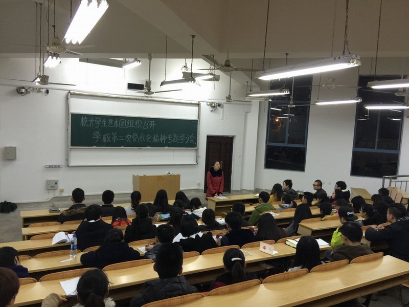2015年1月8日19时,学校大学生艺术团在雁山校区04110室召开学习学校第二次党代会精神专题会。校团委贾璐老师、校大学生艺术团各职能部门及各文艺团队队长参加了此次专题会,会议由贾璐老师主持。