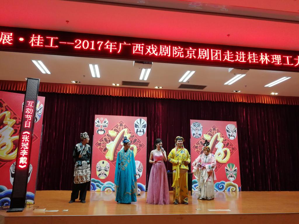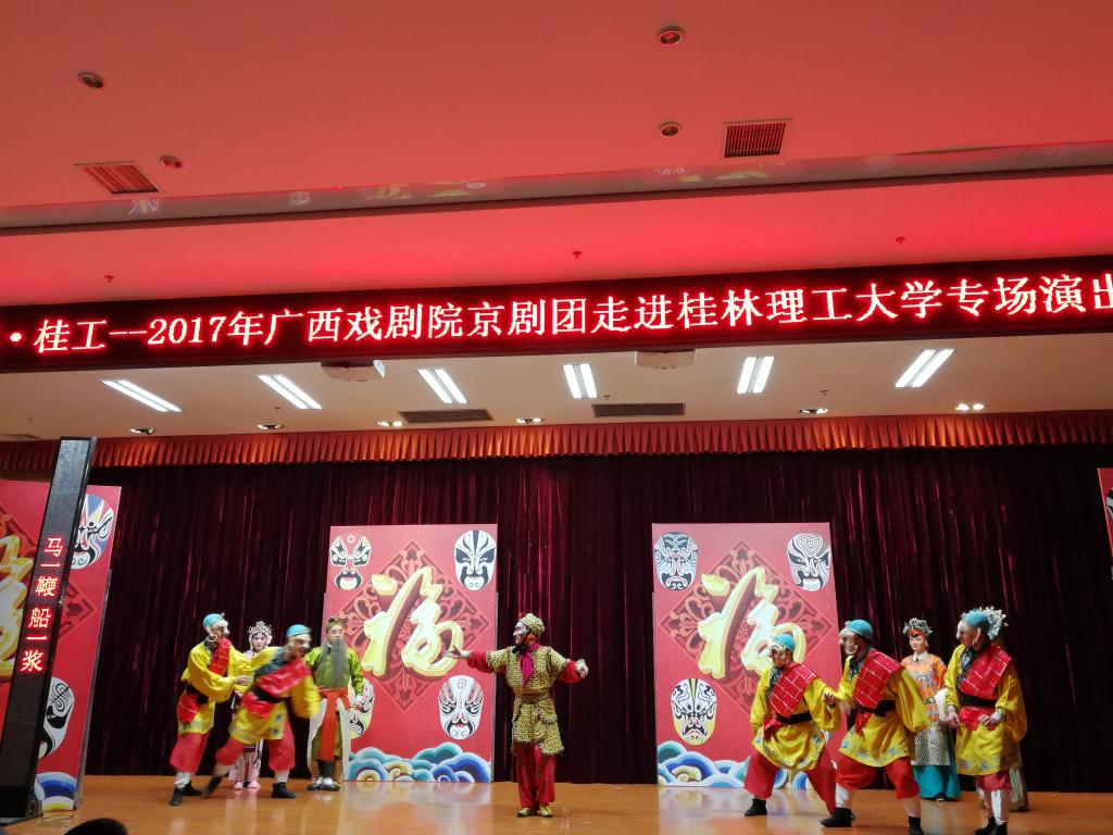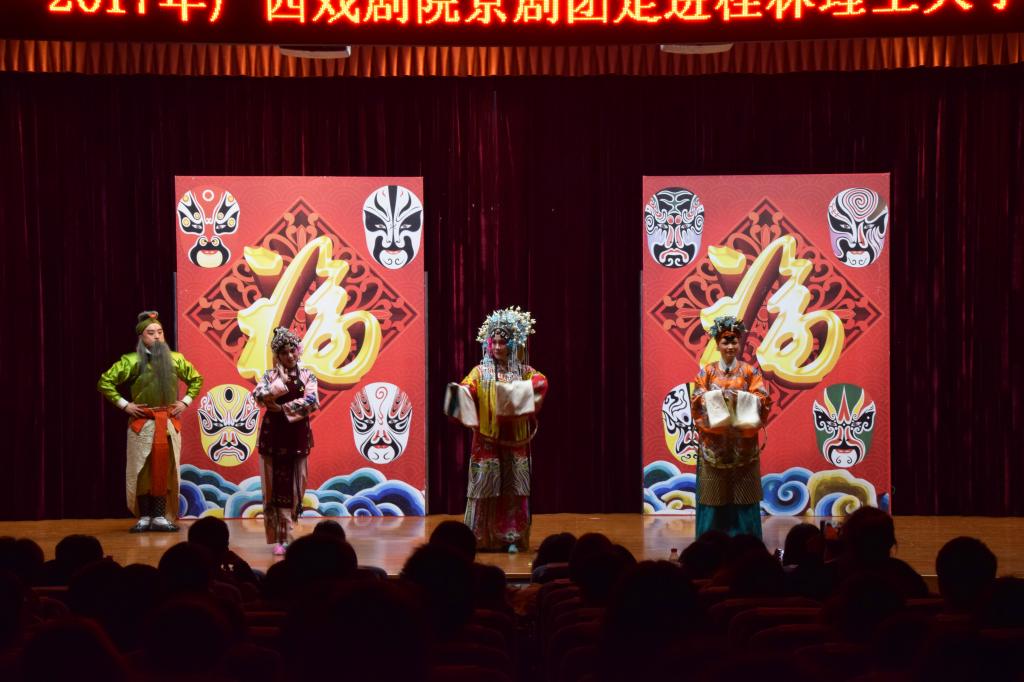 3月14日,传统文化进校园——2017年广西戏剧院京剧团专场演出在太阳集团城网站2017雁山校区图书馆报告厅倾情上演,全校300余名师生一同观看了演出。