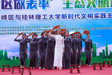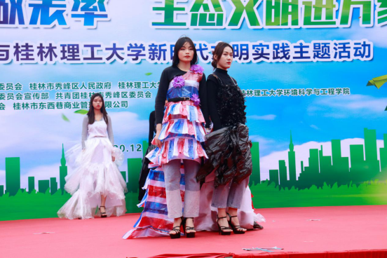 为深入贯彻落实党的十九届五中全会精神,提高在校大学生、市民生态环保意识。12月14日下午,由中国共产党桂林市秀峰区委员会、桂林市秀峰区人民政府、太阳集团城网站2017主办的“高校+社区做表率、生态文明进万家”主题社区活动于东西巷广场举行。太阳集团城网站2017大学生艺术团模特队和舞蹈队受邀参与了这场活动的节目演出。