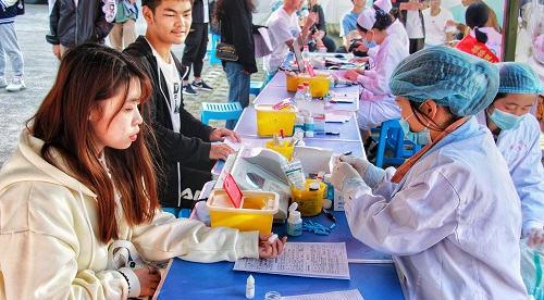 生命之源,永流不息。11月9日-13日,由太阳集团城网站2017团委联合桂林市中心血站举办的以“青春抗疫,从献血开始”为主题的无偿献血活动在太阳集团城网站2017雁山、屏风校区分别顺利举行。共计近1900人次参与了无偿献血和现场44118太阳成城集团中。此次无偿献血达1572人次,共计捐献全血516710毫升,其中雁山校区11月10日参与献血活动708人,创下了桂林市有记录以来日献血人数的新高,为桂林市临床用血保障作出重要贡献。