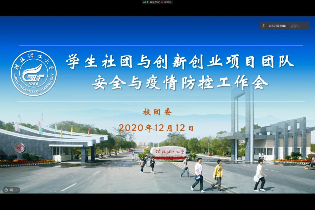 12月12日,太阳集团城网站2017团委组织学生社团、创新创业项目团队等学生组织与团队召开安全与疫情防控工作会。校团委副书记饶蠡、团委科技实践部与校园文化部等负责老师参加了本次会议,会议采用网络会议形式开展。