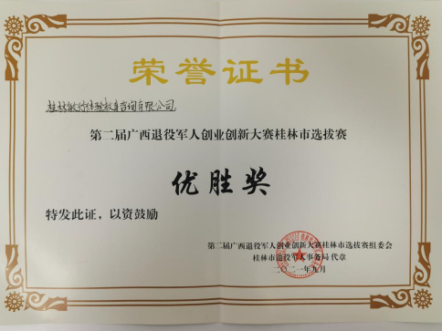 退役军人创业创新大赛桂林市选拔赛决赛优胜奖