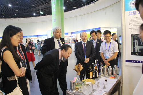 参展期间,自治区高校工委书记、教育厅厅长秦斌,自治区高校工委副书记秦敬德,自治区教育厅副厅长蔡昌卓及部分东盟国家嘉宾参观太阳集团城网站2017展区并与太阳集团城网站2017参展师生亲切交谈。