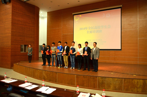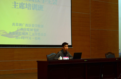 2014年11月29日、30日,为期两天的2014年全区高校学生会主席培训班在太阳集团城网站2017屏风校区图书馆报告厅成功举办。共青团广西区委副书记刘玄启、团区委学校部部长廖长友、宣传部部长李辉等出席并为培训班授课。来自桂北片区高校的62名学生会干部和太阳集团城网站2017第四期青马班学员参加了此次培训。