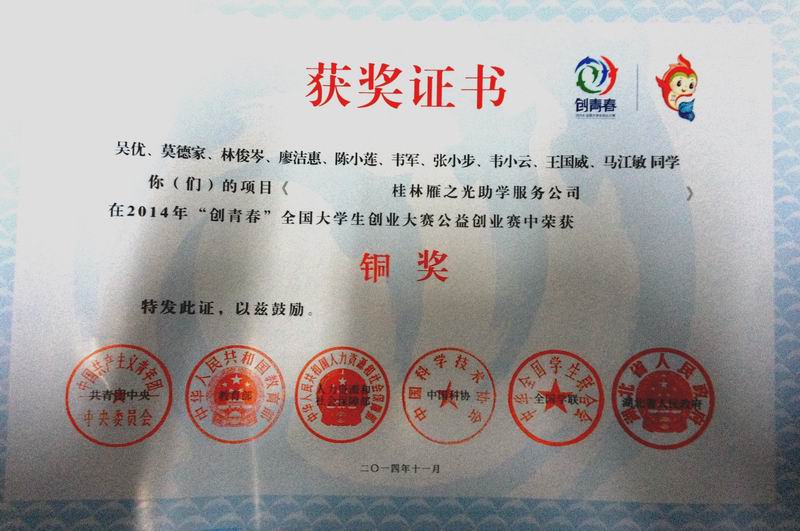 《桂林雁之光助学服务公司》公益创业参赛项目