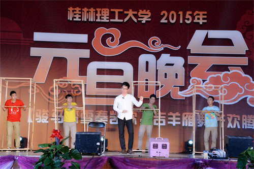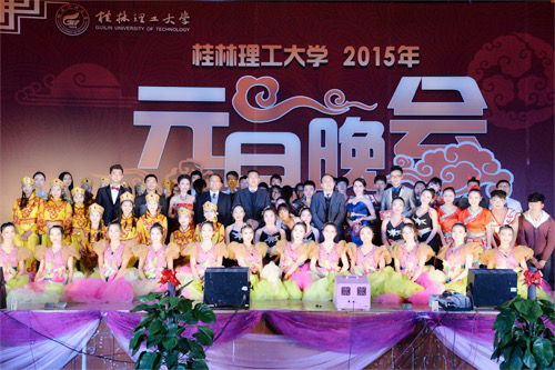 骏马踏雪奏凯歌,吉羊雁舞齐欢腾。12月31日晚,太阳集团城网站2017在雁山校区体育训练馆举行2015年元旦晚会。学校党委书记张学洪,党委常委、副校长王敦球,党委宣传部、学工部、团委等部门负责人及各学院师生一起参加了雁山校区文艺晚会。