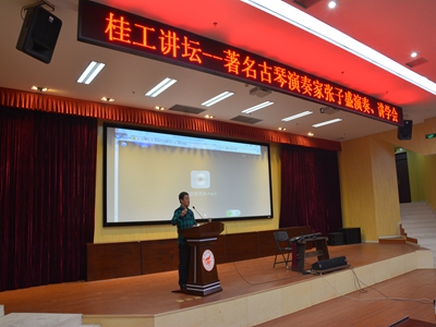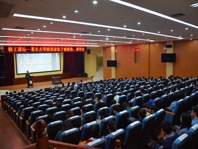 3月27日晚上7:30,著名古琴演奏家张子盛先生应邀做客桂工讲坛,为师生们带来了一场中国古典文化的视听盛宴。校团委书记周国桥老师以及各学院辅导员代表、学生代表、大学生艺术团、音乐协会等众多音乐爱好者齐聚一堂共同感受古琴的神韵与魅力。