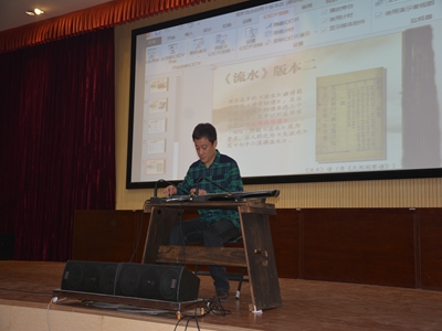 张子盛先生从古琴代表作《流水》的赏析讲起,以古琴的发展历史、价值及音色音律,向在场的观众讲述古琴艺术所独有的深厚底蕴和丰富内涵。在互动环节中,张子盛先生对同学们提出的问题都逐一做了解答。最后张子盛先生用悠扬淡雅、意境辽远的琴声让在座的观众近距离感受了一场高水准的音乐饕餮盛宴。