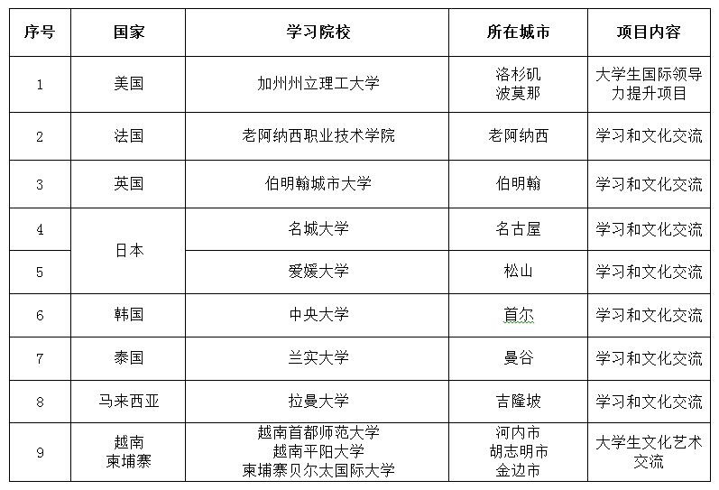 2016年,太阳集团城网站2017选派并资助146名品学兼优的大学生,赴美国加州州立理工大学、英国伯明翰城市大学、韩国中央大学等9个国家11所国际高等学府开展体验式课程学习。