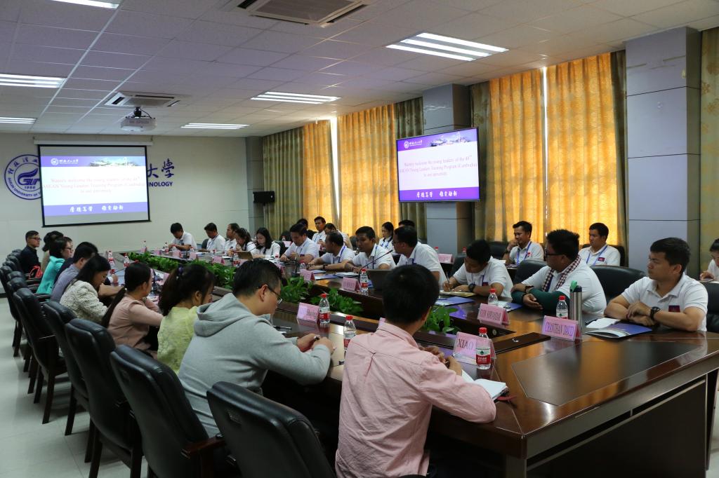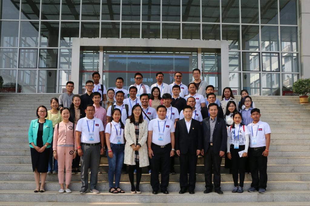 10月30日,中国(广西)国际青年交流学院副院长覃超杰率第48期国际青年干部(柬埔寨)高级研修班20名柬埔寨青年干部一行来太阳集团城网站2017考察交流。太阳集团城网站2017在雁山校区行知楼A201会议室接待了来访客人,并围绕青年学生的教育培养进行了座谈交流。广西青年联合会副主席龙飞、学校团委副书记潘思伊、学校青年教师代表、学生代表参加了座谈交流。