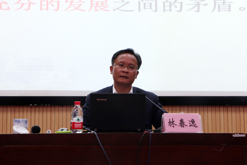 报告会上,林春逸教授围绕“新时代、新理论、新征程、新战略、新政策、新举措、新要求”等“七个新”给大家介绍了“习近平新时代中国特色社会主义思想”。其中,他着重介绍了“新时代”以及“新思想”,提出历史性变革成就了历史性变化,历史性变化把我们推向了新时代。其次,对于“为什么中国特色社会主义能进入了新时代”,林教授用“十大历史性成就”进行了解答。最后,林教授号召广大思想政治工作者将“习近平新时代中国特色社会主义思想”与思政育人工作相结合,并向广大青年提出寄语:思想政治教育工作者是精神家园的营造者,希望大家都能进一步夯实专业基础,转变思想政治教育理念,用习近平新时代中国特色社会主义思想体系的最新成果武装头脑,为实现中国梦贡献出自己的青春力量。