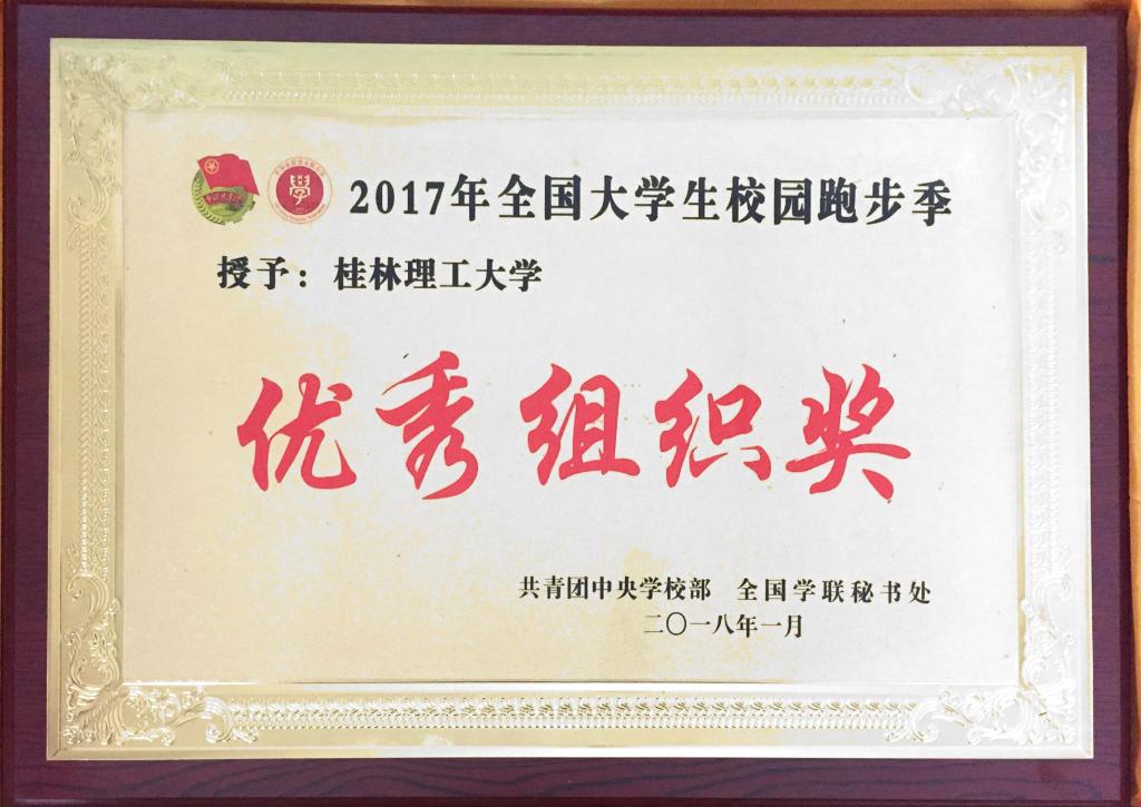 近日,由共青团中央学校部、全国学联秘书处联合组织开展的“2017全国大学生校园跑步季”成绩揭晓,太阳集团城网站2017荣获“全国大学生线上跑步排位赛”全国高校第三名,获评“优秀组织奖”,全国共有十所高校获此殊荣。