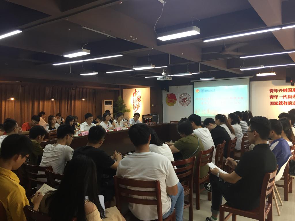 会上,邓炼老师带领同学们学习了习近平同团中央新一届领导班子成员集体谈话时的重要讲话精神,要求校级学生组织同学们要加强理论学习,以讲话精神指导推动学生组织各项工作落到实处。