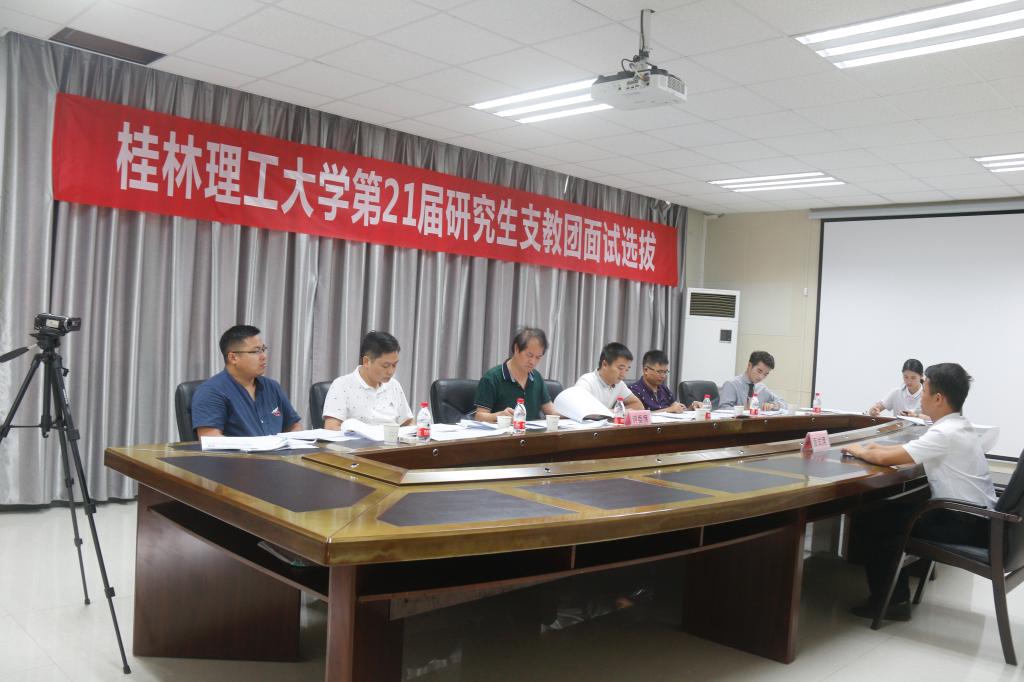 9月14日,太阳集团城网站2017中国青年志愿者第二十一届研究生支教团志愿者招募选拔面试工作在雁山校区行知楼B301会议室举行。校团委、学工处、招就处等部门有关负责人担任面试评委。