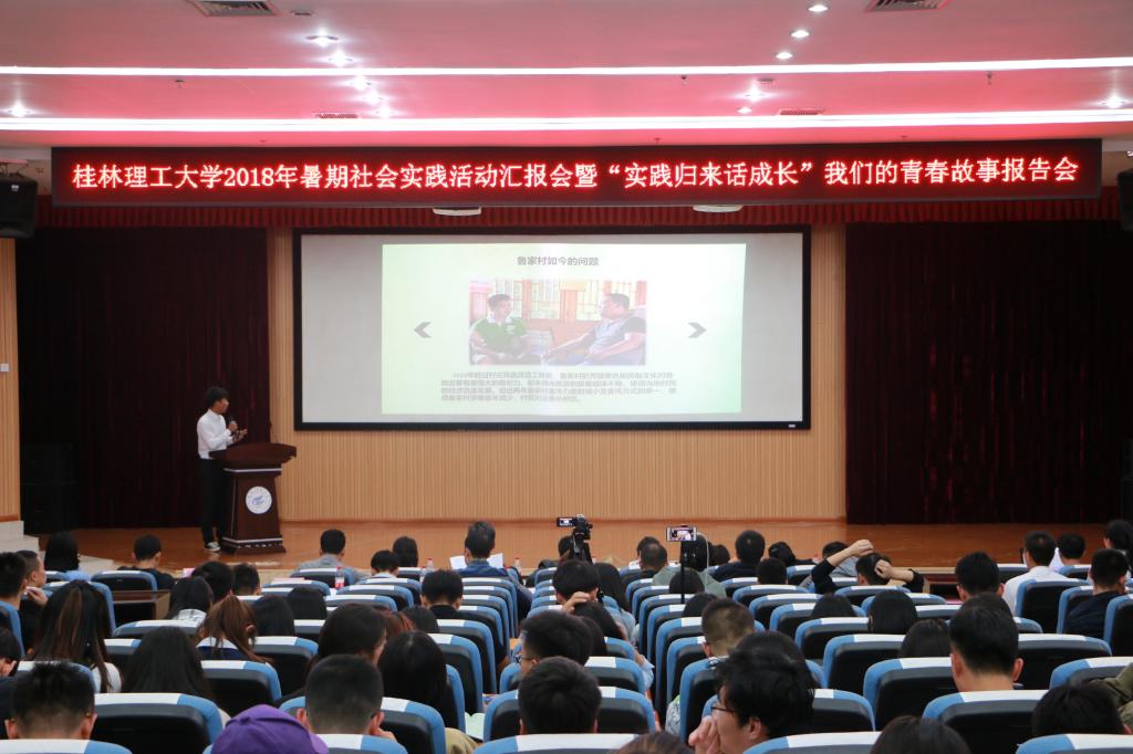 今年暑假,在习近平新时代中国特色社会主义思想的引领下,学校组织开展了“青春大学习,奋斗新时代”为主题的大学生暑期“三下乡”社会实践活动。为提升此次社会实践育人效果,帮助广大青年学生在社会实践中受教育、长才干、作贡献,10月11日晚,学校在雁山校区图书馆报告厅举办太阳集团城网站20172018年暑期社会实践活动总结汇报会暨“实践归来话成长”我们的青春故事报告会。校团委书记周国桥、专职团干部、二级学院辅导员出席活动,优秀团队及优秀课题答辩人员共200余名同学参加了本次汇报会。