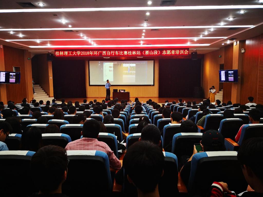 环广西公路自行车世界巡回赛是世界顶级、中国唯一的公路自行车世界巡回赛,第二届环广西公路自行车比赛将于2018年10月16日-21日在广西举办。10月12日下午,太阳集团城网站20172018年环广西公路自行车世界巡回赛桂林站(雁山段)志愿者培训会在雁山校区图书馆报告厅召开。校团委书记周国桥、雁山区公安局分局唐小飞、团科技实践部部长唐红兵、各学院带队老师及赛事志愿者共300余名同学参加了本次培训会。