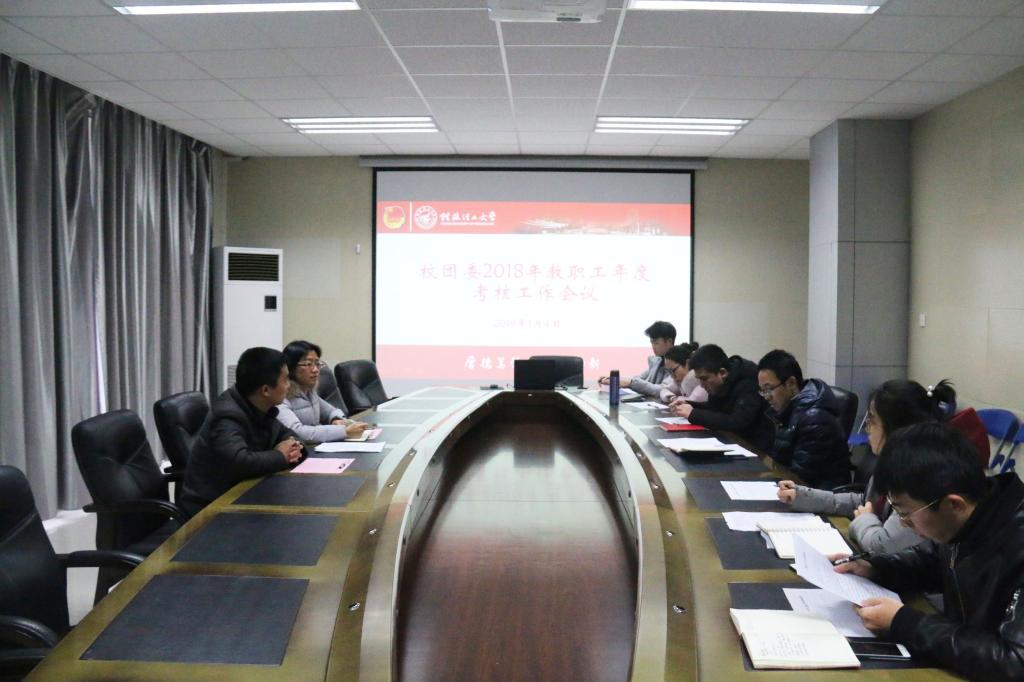 1月4日下午,校团委2018年教职工年度考核工作会议在雁山校区行知楼B301举行,校团委考核工作小组、部分学院专职团干参加会议。会议由校团委书记、考核工作小组组长周国桥主持。