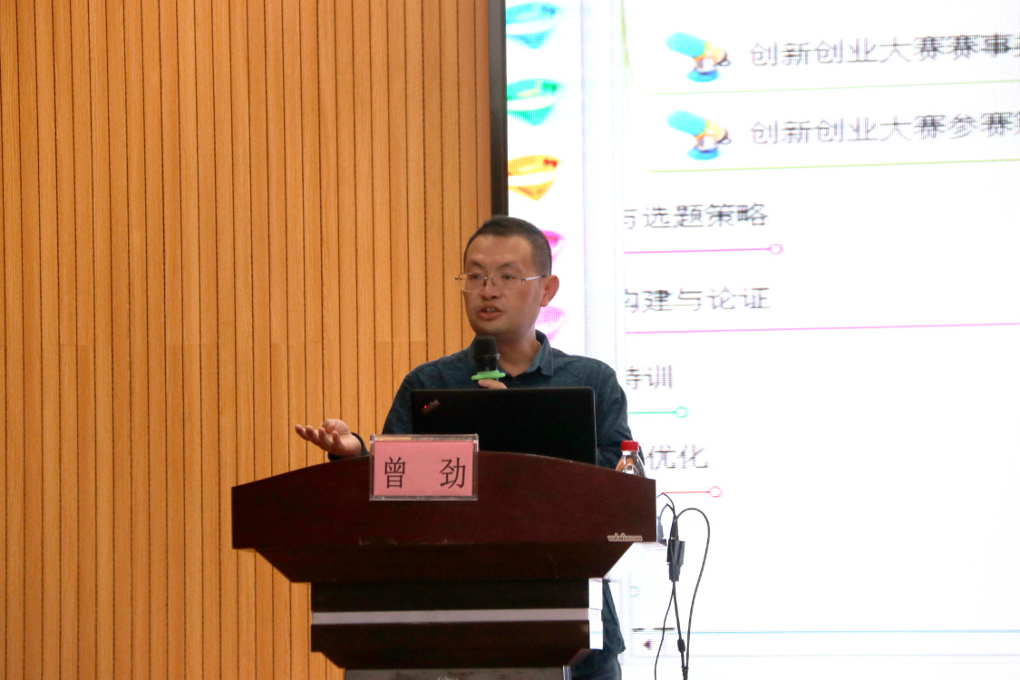 报告会上,曾劲先生首先通过思维导图的形式介绍了高校发展学生应具备的素质、创新创业教育的意义,并强调创新创业是高等教育改革的突破口,是提高大学生素质教育的关键。随后,曾劲先生从“互联网+”大赛的参赛类别和参赛筹备两方面进行了深度解析,深入浅出的分析了创新创业比赛中团队合作、商业模式构建、市场调研、产品定位的重要性及创业大赛作品文案撰写、优化的技巧。最后,曾劲先生通过案例分享他的创业历程和指导经验,并指出“互联网+”大赛参赛项目具备创新性、团队性和商业性的意义及价值。