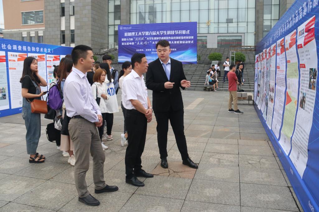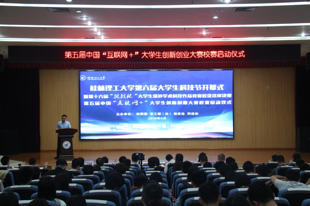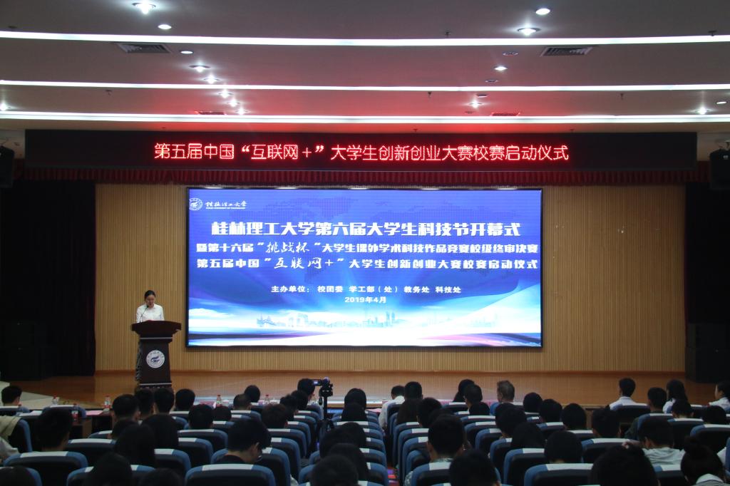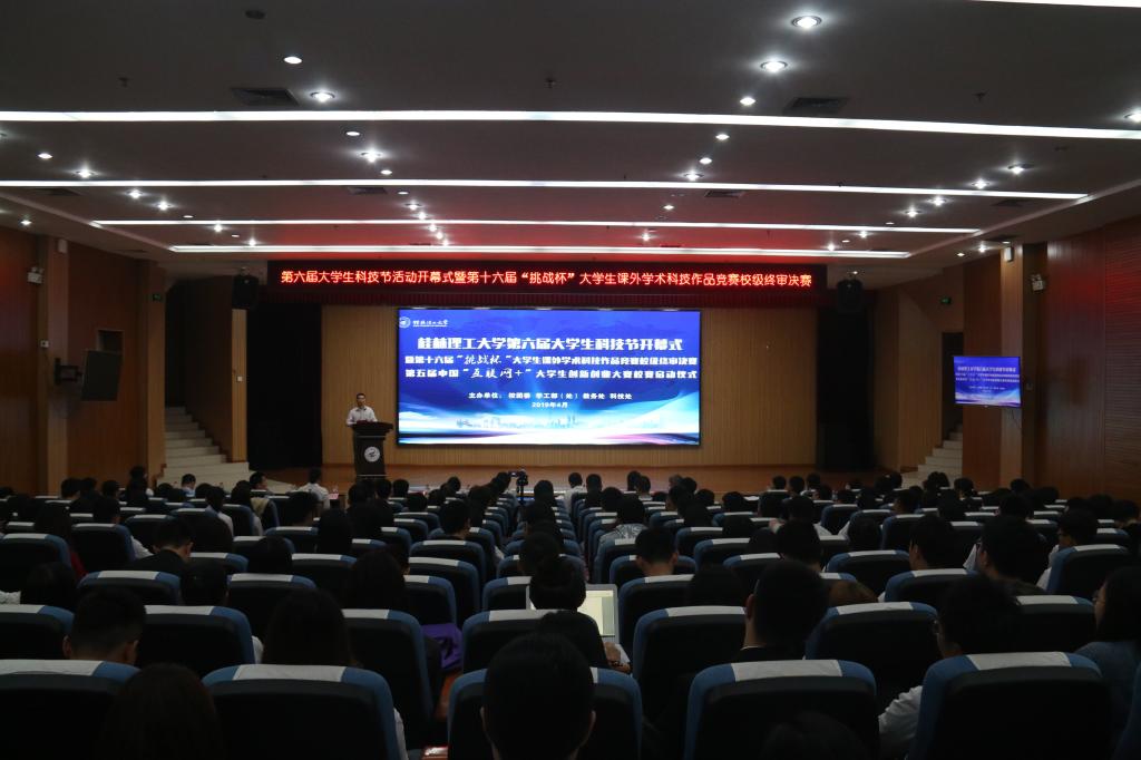 4月27日上午,第六届大学生科技节开幕式暨第十六届“挑战杯”大学生课外学术科技作品竞赛校级终审决赛、第五届中国“互联网+”大学生创新创业大赛校赛启动仪式在雁山校区顺利举行,学校副厅级调研员张劲松出席开幕式并致辞。校团委、学工部(处)、教务处、科技处负责人,企业代表桂林坤鹤文化传播有限公司负责人、各二级学院党委副书记及团委书记,“挑战杯”与“互联网+”参赛师生代表300余人参加开幕式活动。