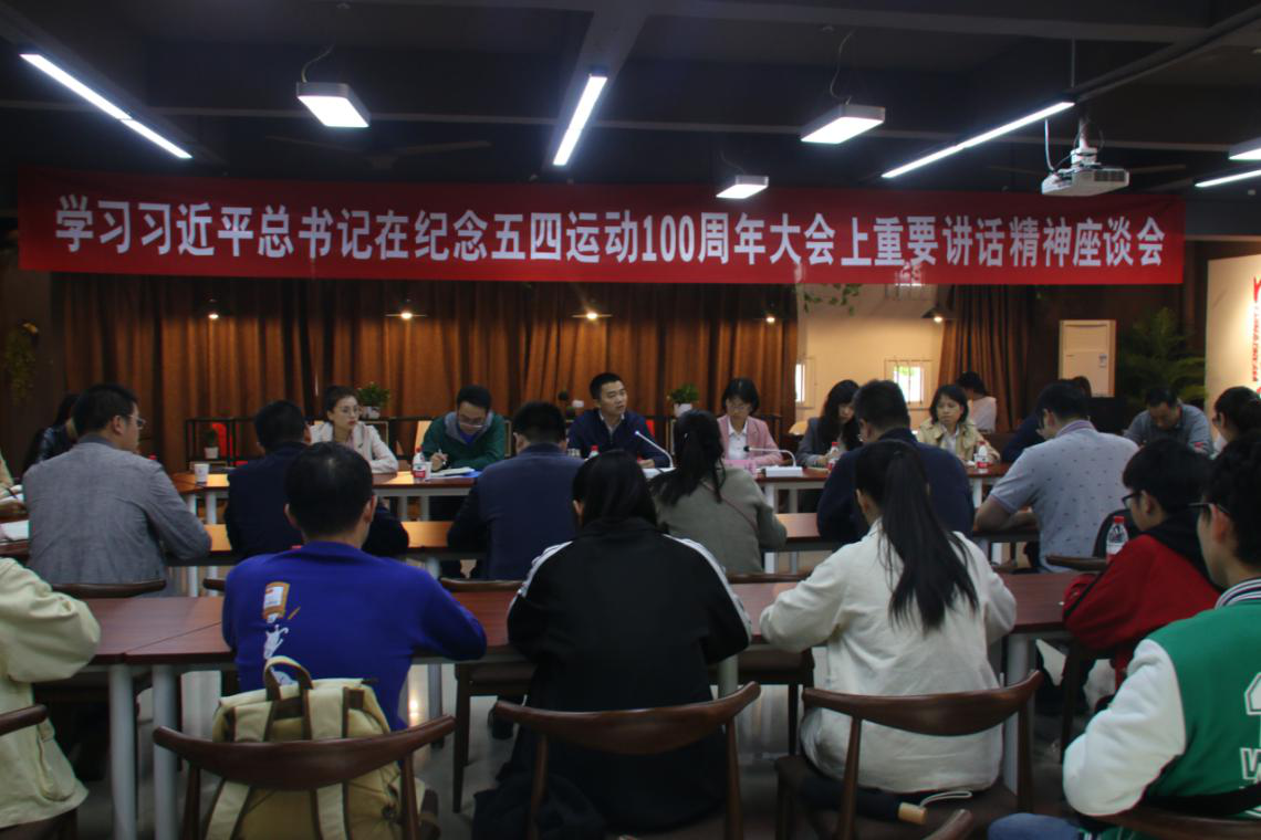 为了认真贯彻落实习近平总书记在纪念五四运动100周年大会上重要讲话精神,校团委于5月6日下午在雁山校区青马书屋召开学习习近平总书记在纪念五四运动100周年大会上重要讲话精神座谈会,学校团委书记周国桥、副书记莫媛出席会议,校团委专职团干、各学院团委书记及校院两级学生骨干参加本次座谈会。