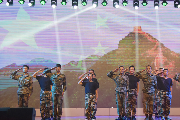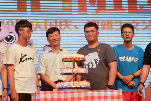 晚会共分三个篇章。在第一篇章“守初心•不忘来路”中,舞蹈《红船》用极具表现力的肢体语言将大家带回到烽火连天的革命岁月,将红色的火种播撒在每位同学的心里;情景诗朗诵《铭记•逐心》带领我们回顾了祖国站起来、富起来、强起来的历史进程,瞬间增强了所有观众的民族自信心和自豪感;纯人声合唱《夜空中最亮的星》,让逐梦桂工的2019级新生感受到了温暖与希望;舞蹈《映山红》展现了生活在水深火热中的百姓渴望红军归来的强烈心声,展现了红军与百姓血浓于水的深厚情谊。第二篇章“绘蓝图•筑梦桂工”向大家展现了五彩斑斓的桂工校园;街舞《迸发》体现了桂工学子张扬的个性和蓬勃的朝气;情景综合表演《活力校园》以及模特走秀《遇见青春》,展示了太阳集团城网站2017特色校园文化建设的丰硕成果以及桂工学子的青春活力;舞蹈《绣球女》,充分展现了广西引人入胜的壮族民族风情。在第三篇章“担使命•共创未来”中,歌伴舞《再一次出发》,向我们吹响了新时代为实现中华民族伟大复兴的中国梦接续奋斗的号角;太阳集团城网站2017退伍老兵们的舞蹈《誓言铮铮》,英姿飒爽,表达了对人民子弟兵的崇高敬意,展现了中华好儿女保家为国的决心。晚会期间,学校特地为与祖国母亲同生日的同学准备了暖心的庆生环节,解庆林校长与同学们共切生日蛋糕并送上生日祝福。