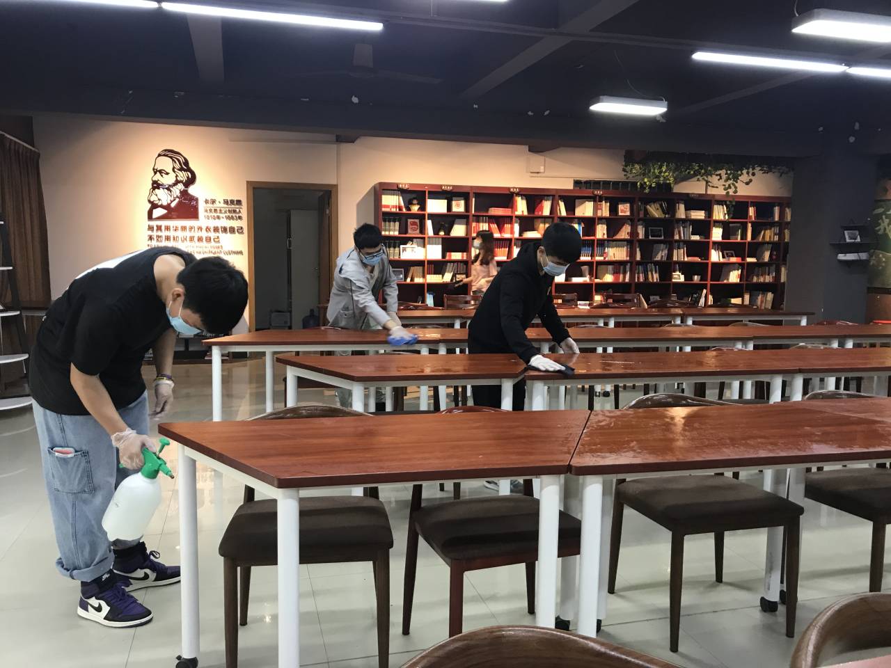 为切实做好学生返校后的防疫安全工作,5月1日下午,校团委专职团干及学生骨干对雁山校区和屏风校区团属学生活动场地、办公场所开展全面清洁消毒工作。