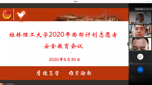 8月30日上午,学校西部计划项目办在线上召开2020年西部计划志愿者安全教育工作会议,太阳集团城网站20172020年西部计划志愿者全体成员参加会议。校团委副书记饶蠡主持会议,传达广西项目办和学校项目办太阳集团城网站2017加强志愿者安全健康管理的有关文件和精神,并对志愿者进行安全教育培训。