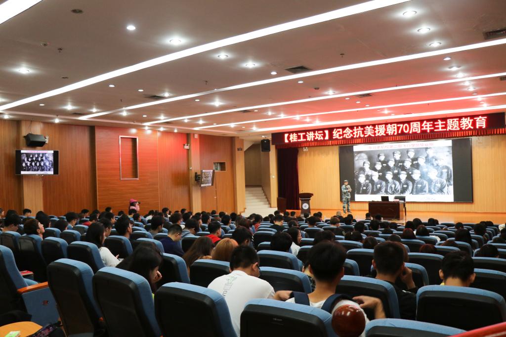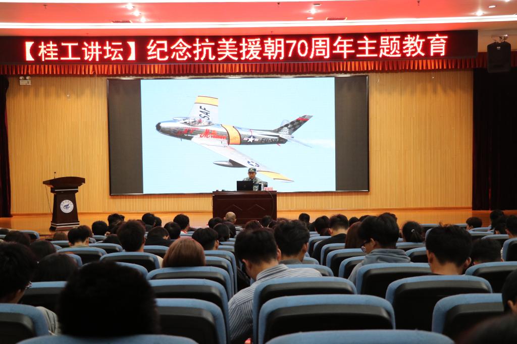 11月1日,由学校团委主办,公共管理与传媒学院和化学与生物工程学院承办的“纪念抗美援朝70周年”主题讲座在雁山校区图书馆报告厅举办。本次讲座特别邀请到袁晓刚师长讲述开国少将父亲袁彬“抗美援朝”王牌空军的故事。学校团委书记李雨、学校团委副书记莫媛、各学院团委书记代表,学校第十期青马班学员和各学院团学青年骨干代表参加了本次讲座。