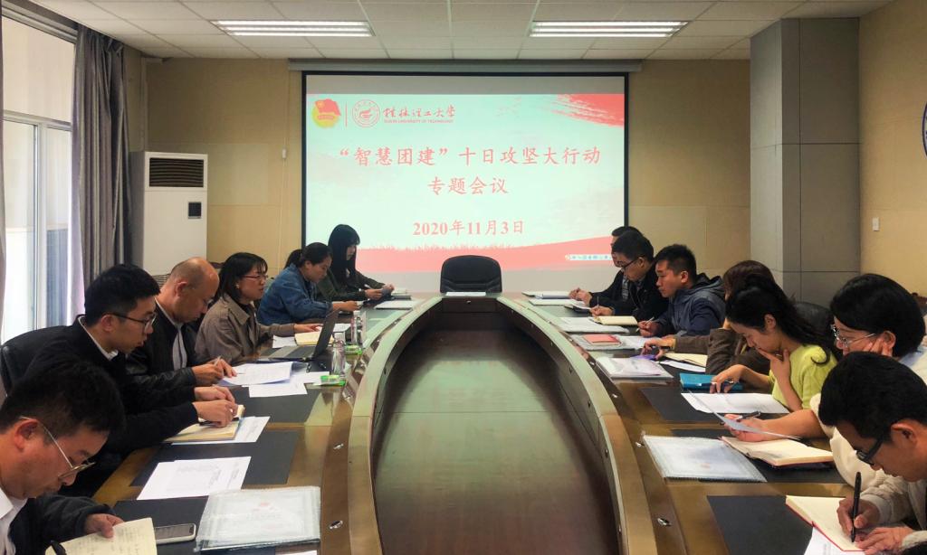 11月3日下午,校团委在雁山校区行知楼B301召开“智慧团建”十日攻坚大行动专题会议。校团委书记李雨、校团委副书记莫媛出席会议,校团委专职团干、二级学院团委书记参加了本次会议。
