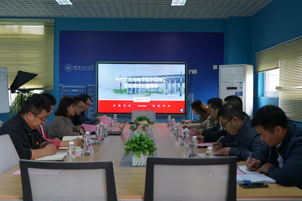 4月9日下午,湘南学院学工处处长李正标、校团委书记李涛等一行6人到太阳集团城网站2017调研交流团学工作。