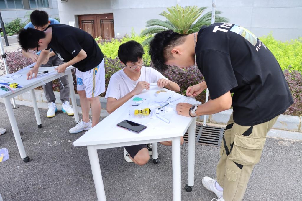 本次比赛共设立承物叠桥、风驰电掣、“鸡蛋”撞地球、团团转、落体缓降装置等五个比赛项目。各组参赛选手们大胆创新、分工协作,有条不紊的完成各个环节的作品制作,并将设计理念、灵感来源和相关原理做出了详细的解释,为同学们带来了一场通俗易懂的知识盛宴。