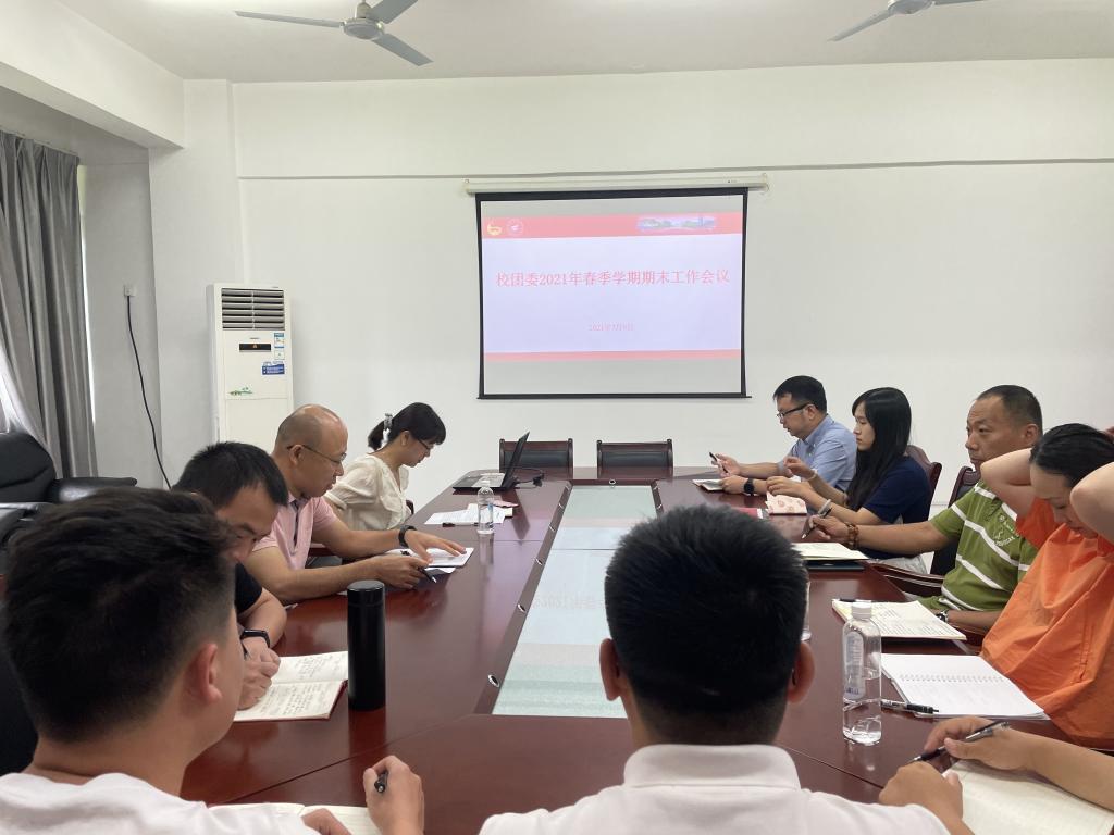 7月9日上午,校团委在雁山校区B318会议室召开2021年春季学期期末工作会议,校团委书记李雨、副书记莫媛、副书记饶蠡以及专兼职团干出席会议。