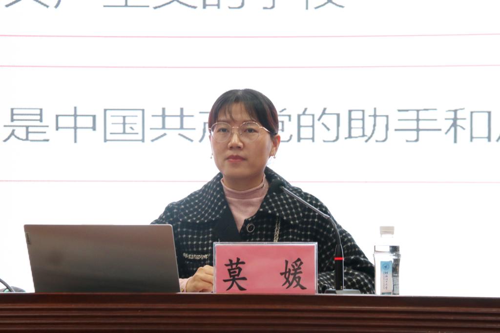 开班仪式结束后,莫媛副书记作了题为《砥砺奋进的共青团》专题辅导报告,向全体学员解读了共青团的性质和职能、共青团的诞生和光辉历程以及新时期共青团的蓬勃发展,号召同学们志存高远、脚踏实地,争做新时代的弄潮儿。