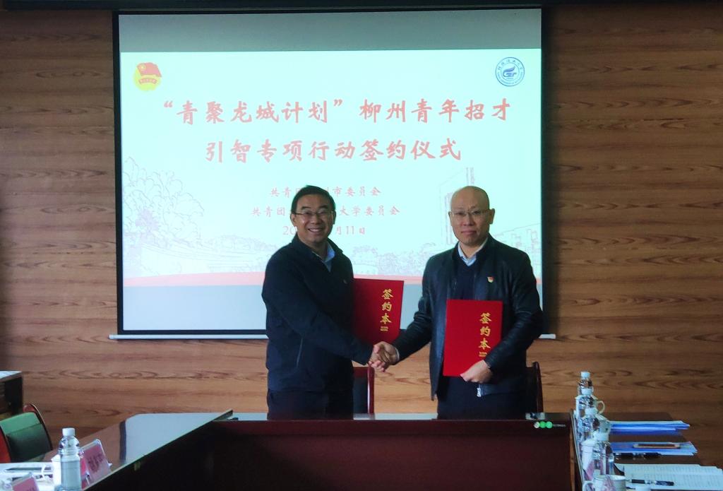 书记在讲话中对学校65周年校庆表示祝贺,并简要介绍了“青聚龙城计划”柳州青年招才引智专项行动工作,希望通过此次合作为契机,进一步加强双方的合作,确实发挥好共青团服务青年的作用。